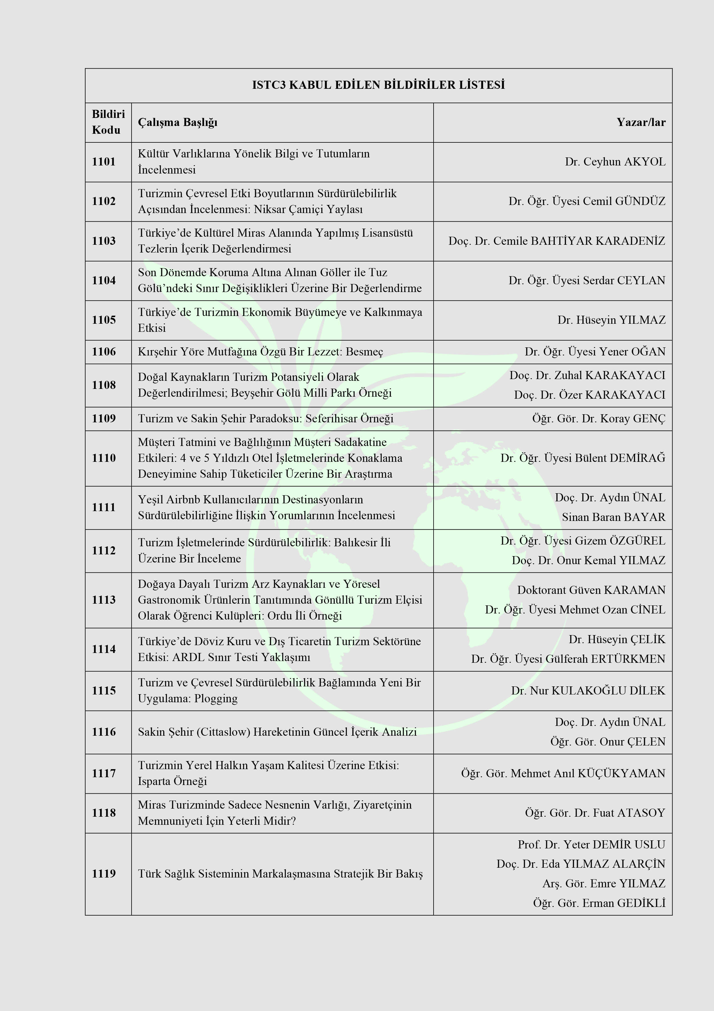 Kabul Edilen Bildiriler